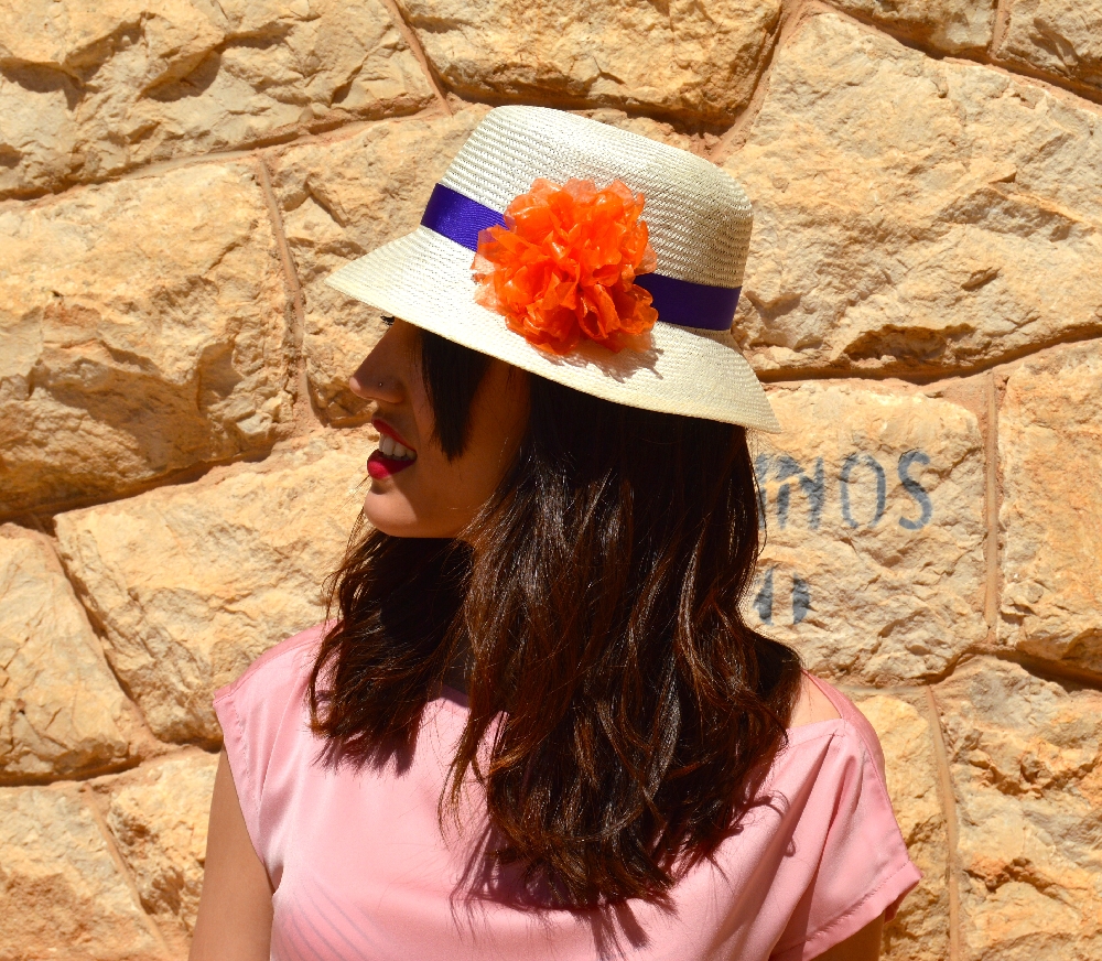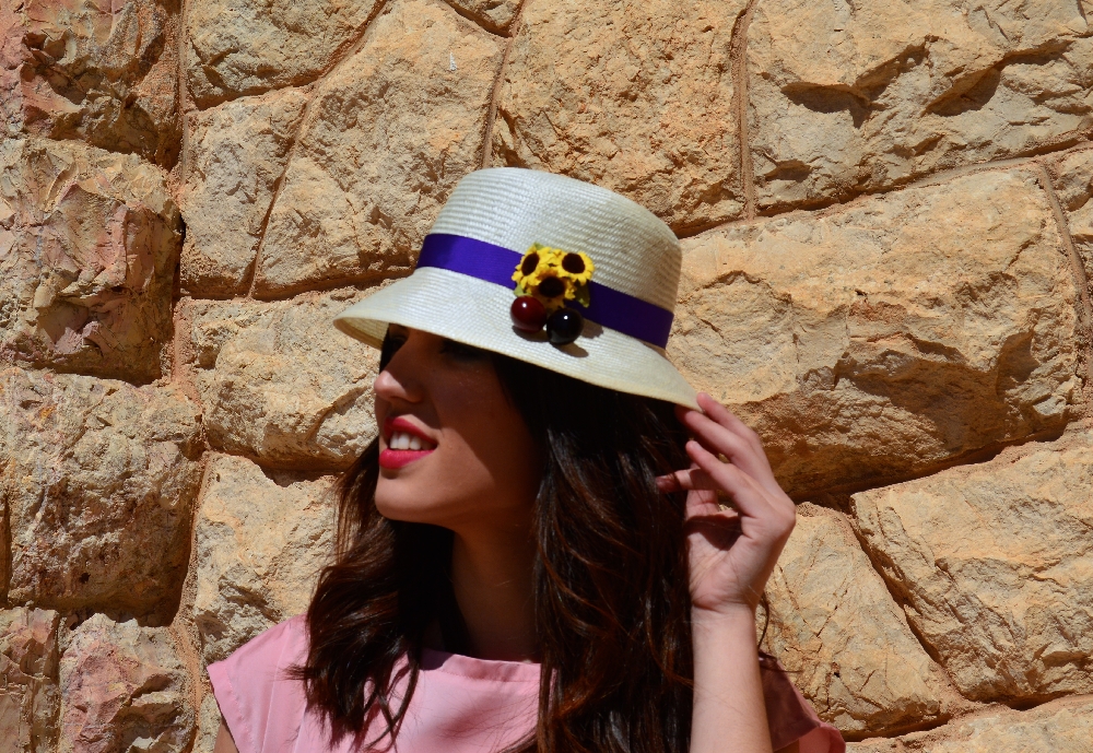 PRECIOSO SOMBRERITO CLOCHÉ DE PARASISAL DE PRIMERA CALIDAD, CON CINTA Y ADORNO INTERCAMBIABLE.